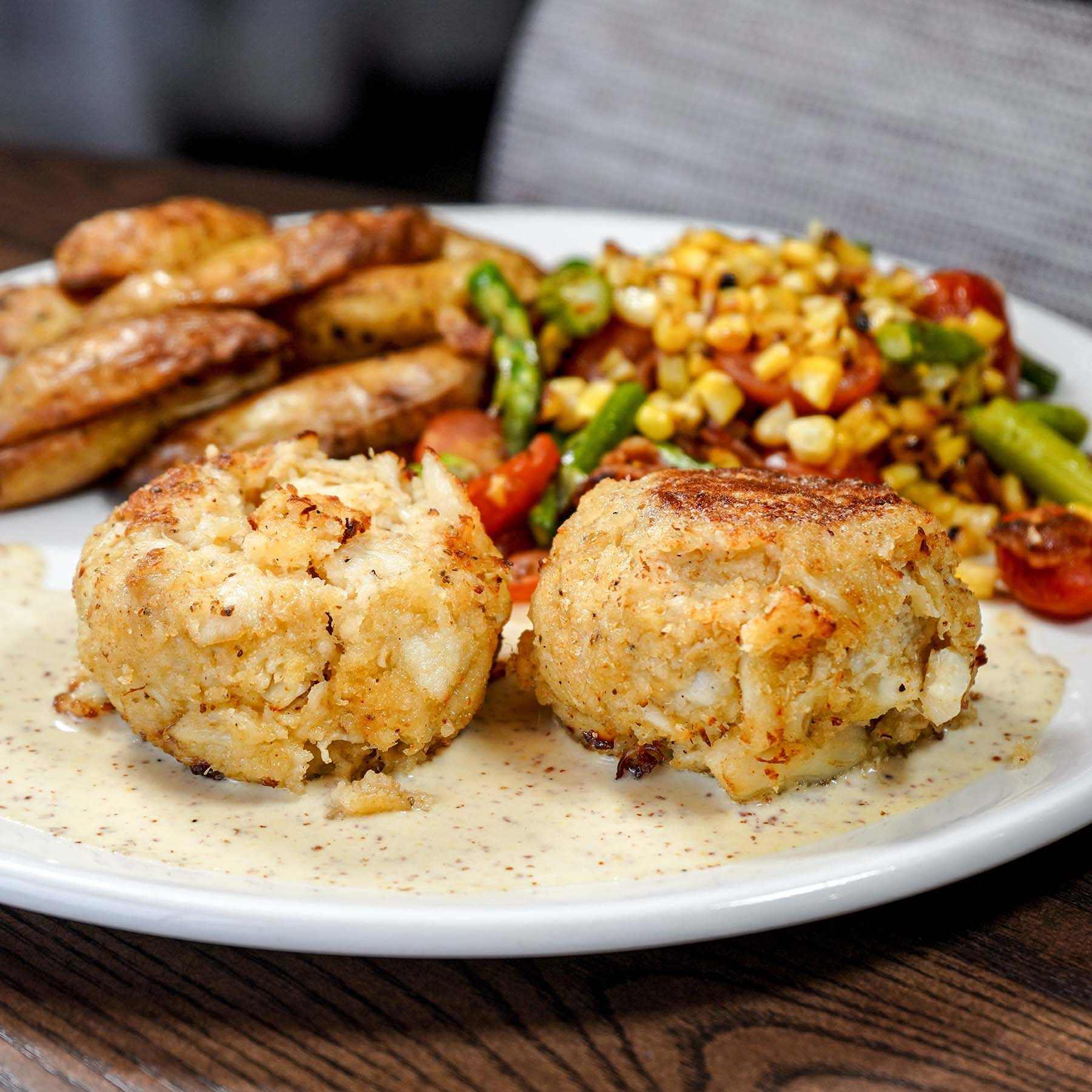 jumbo lump blue crab, roasted corn & asparagus succotash, old bay fingerling potatoes, whole-grain mustard beurre blanc