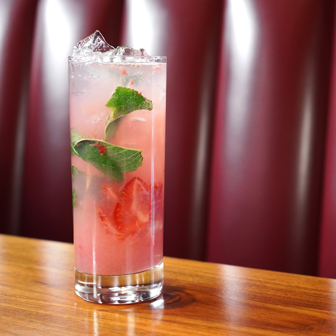don q cristal rum, muddled strawberry, guava, mint, lime