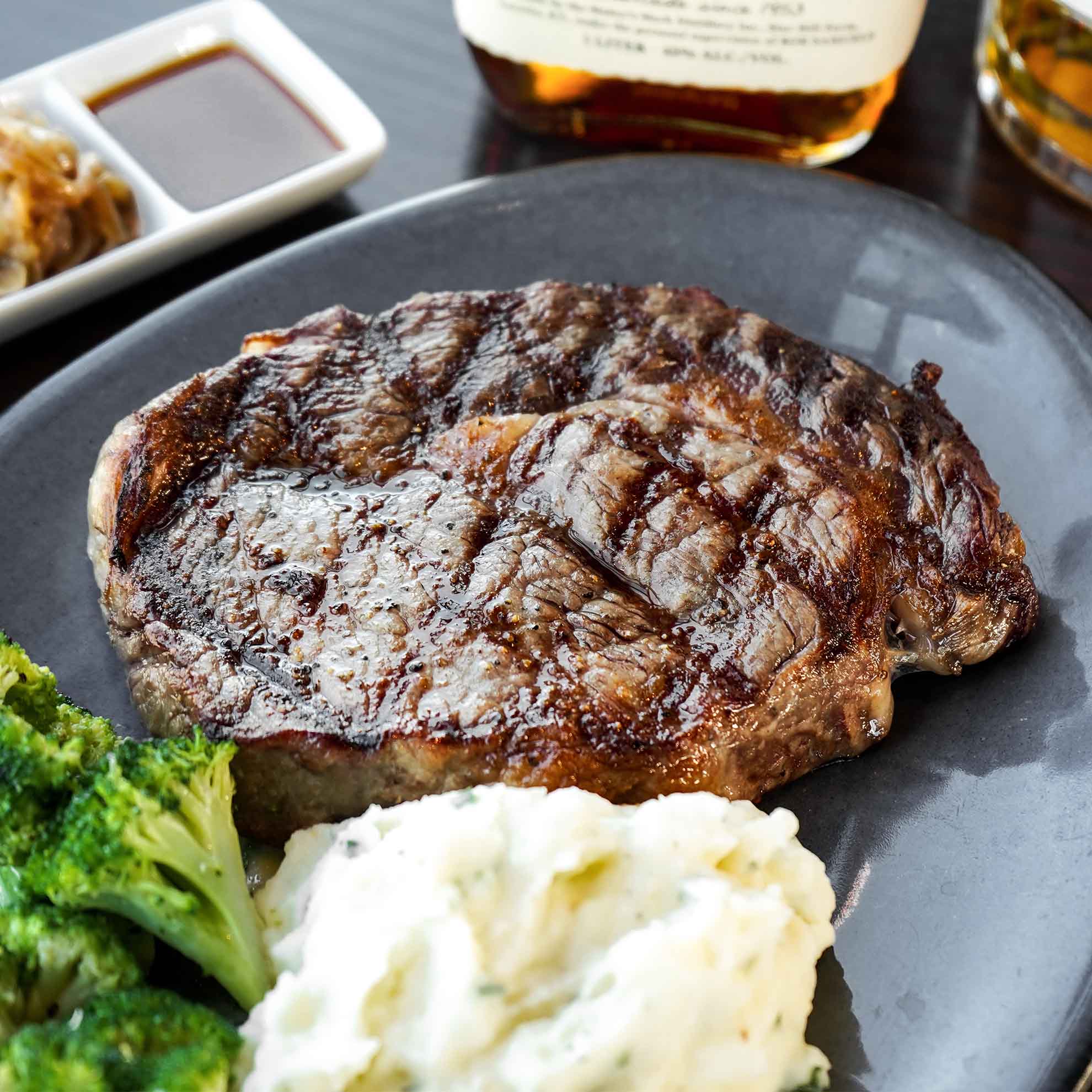 14oz mishima reserve american wagyu ribeye, seasonal vegetable, garlic mashed potatoes